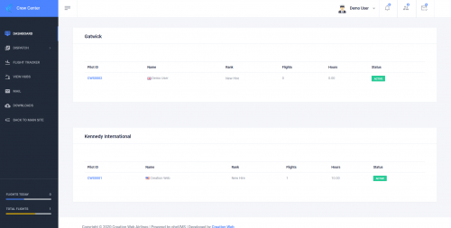 We appreciate you downloading our skin for phpVMS and ask you to please keep the footer link to us "Developed by Creation Web"