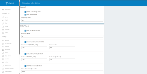 - PIREP rules: miles/minute, smooth-landing bonus, bad-landing penalty, score bonus (with cap)