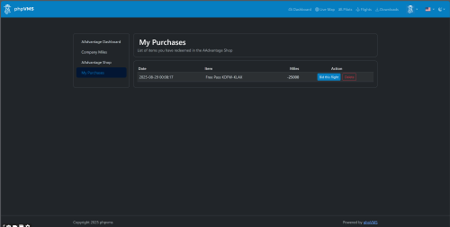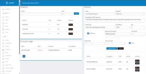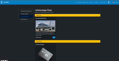 AAdvantage Miles is a lightweight, production-tested module that adds miles/points to your VA with automatic earning rules, leaderboards, and an optional in-VA Shop with "special" Flight Passes for sale.