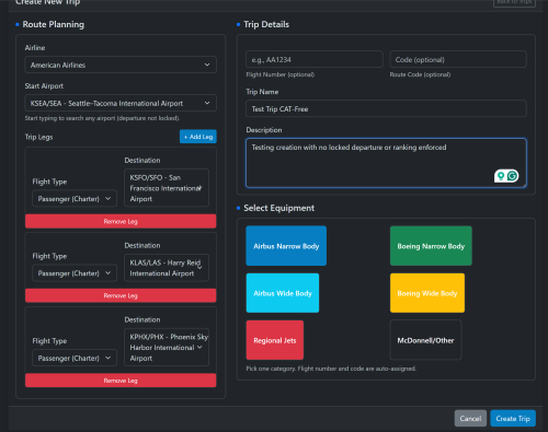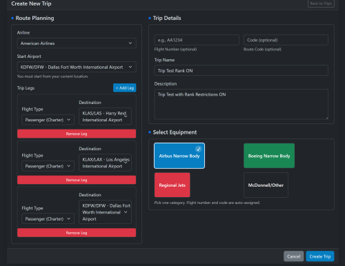 Create multi-leg “free flight” trips that your pilots can bid on and fly, keeping them moving from airport to airport.