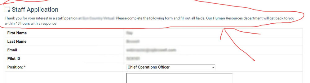 Ohh ok I see. that is an easy fix. The link in the menu is wrong. it is heading to pages/staffapplication. that is a addon page created in the acp. We really dont need to do that. That essentially trumps the module itself. it needs to be pointed something like this: <a href="<?php echo url('/Application'); ?>">Application</a> Obviously the word Application After the link an d before the close can be anything from application, pilot application, employment etc etc
