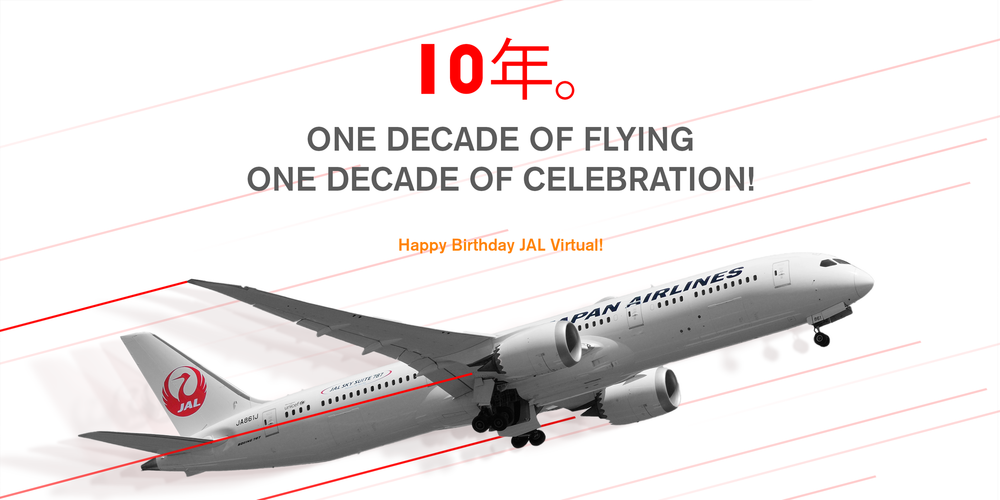 Japan Airlines Virtual is celebrating its 10th anniversary of operations from April 1st 2017 onwards. We would like to share this milestone achievement of our virtual airline with our pilots and the wider flight simulation community. Feel Free to join JAL VIRTUAL events. Voice communication will be conducted via our discord server: https://discord.gg/YgATVRt Throughout the course of the next few months we will be having 10 different events under the banner “10 YEARS EVENT #X”. We are open and interested in having a wide variety of events, if you are interested in in collaborating with us in an event, or want to invite JAL VIRTUAL to your event, please send us an email to admin@jalvirtual.com 10 YEARS EVENT #1 Tokyo RJTT to Okinawa(Naha) ROAH Sign up(guests allowed): http://jalvirtual.com/en/index.php/ccevents/event/41 FB EVENT: https://www.facebook.com/events/1898177963739564/ 10 YEARS EVENT #2 Tokyo, Japan RJAA to Honolulu, USA PHNL Sign up(guests allowed): http://jalvirtual.com/en/index.php/ccevents/event/42 FB EVENT: https://www.facebook.com/events/1653384811637154/