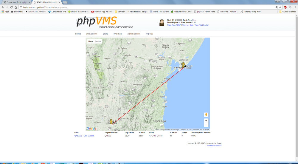 Hi, My name is Caio Guedes, and I'm creating a new VA, Horizon Linhas Aéreas ( BR ) , But I'm having a problem, my live map is not working. Can't see flights in real time. It's now showing up, only the map, nothing more. But when the flight is ended, I can see