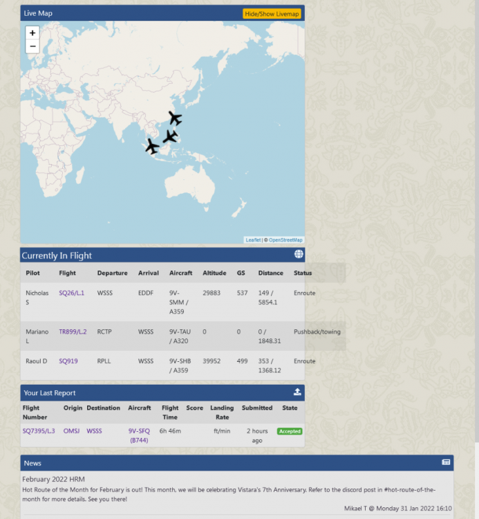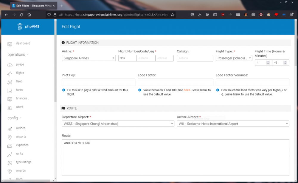 G'day gents, I'm running 7.0.0-dev+220225.9d368e and Disposable. Disclaimer that they both need to and will be updated urgently so if this issue can only be solved as such then kindly advise and disregard this thread. Basically as the screenshots show, I have a slight (SIA/SQ) that is showing up incorrectly as SVAG. Because our VA runs multiple subsidiaries (eg. SIA/TGW), we place all pilots under the shell airline "SVAG" but there are no actual flights listed under this. However, one particular flight has caught my attention multiple times recently showing the latter prefix. Is there any way to correct this? It's very minor and only a slight aesthetic/OCD-level annoyance, but if an easy fix is possible I'd like to do it. Thanks in advance.
