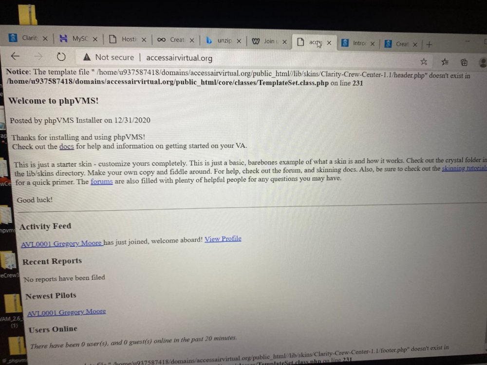 2. When i want to add a skin, after installing the skin, i get this message (photo below) What do i do. I treid adding (/home/u937587418/domains/accessairvirtual.org/public_html//lib/skins/Clarity-Crew-Center-1.1/header.php) on line 231 in the quotations just as instructed, bit it just made it worse. What is the key to activating the skin?