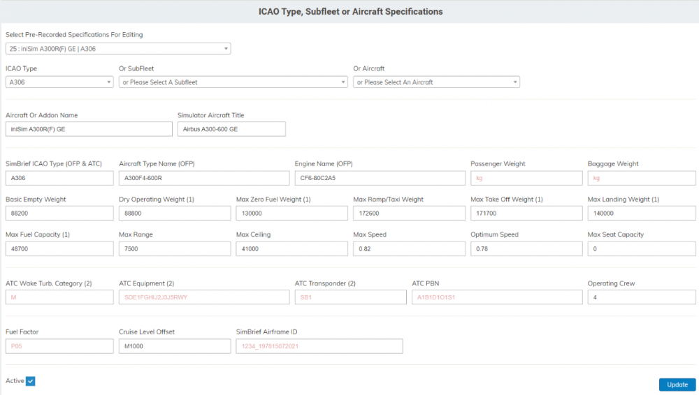 It is already possible at Subfleet level. If you have custom airframe ID's for specific aircraft types, you can use them at SimBrief Type field of a subfleet. When filled, that field is sent to SimBrief via API as per their documentation and gets used during planning. Additionally it is possible to have multiple custom airframe ID's assigned to an aircraft, a subfleet or to an ICAO code via a module (Disposable Basic > Aircraft Specs), also it is possible to use that module for more custom options (like not using airframe ID's but sending all info as "custom aircraft data", which has some benefits compared to using a saved airframe ID) Safe flights