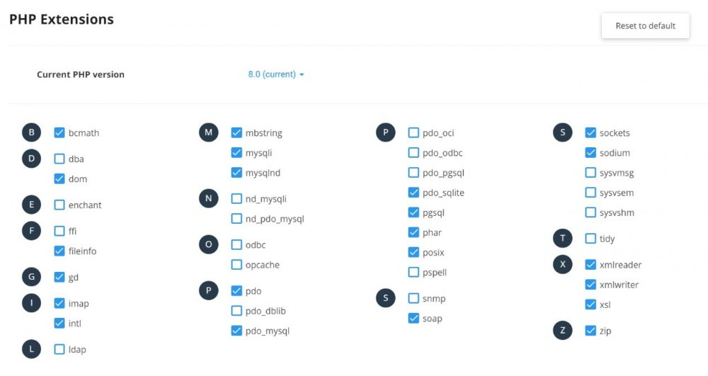 I am using php 7.2 but I can choose between (5.6, 7.0, 7.1, 7.2, 7.3, 7.4, 8.0).