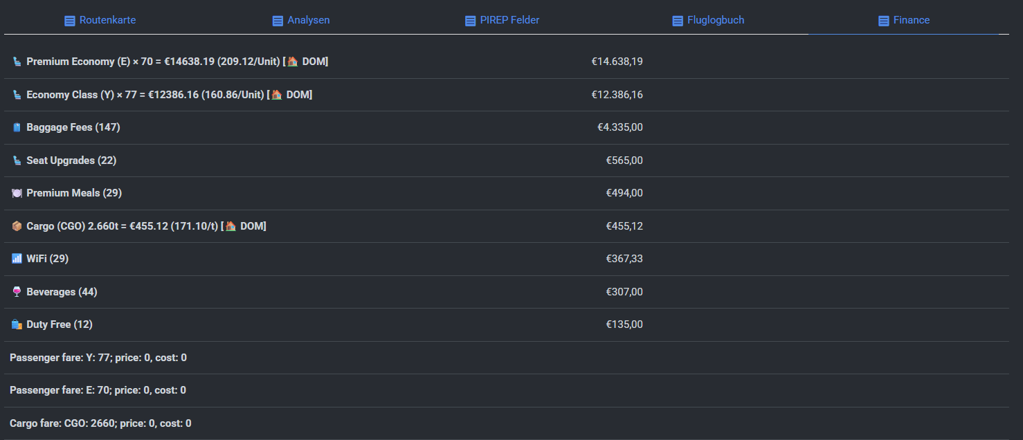 The idea is to give virtual airlines a tool that can support anything from a simpler economy model up to a much more detailed financial simulation.